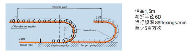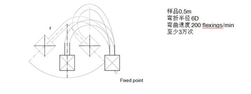 這項測試是拖鏈電纜必做的項目,彎曲半徑為6D。