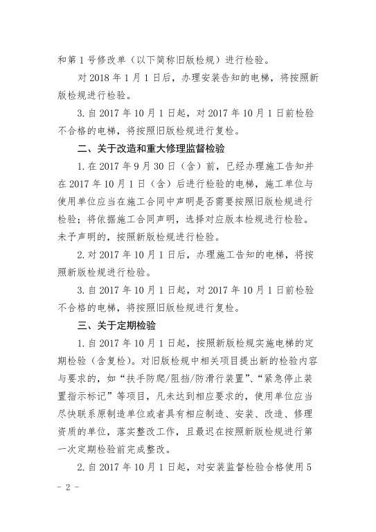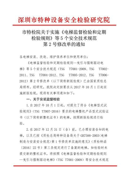 關于實施《電梯監督檢驗和定期檢驗規則》等5個安全技術規范第2號修改單的通知