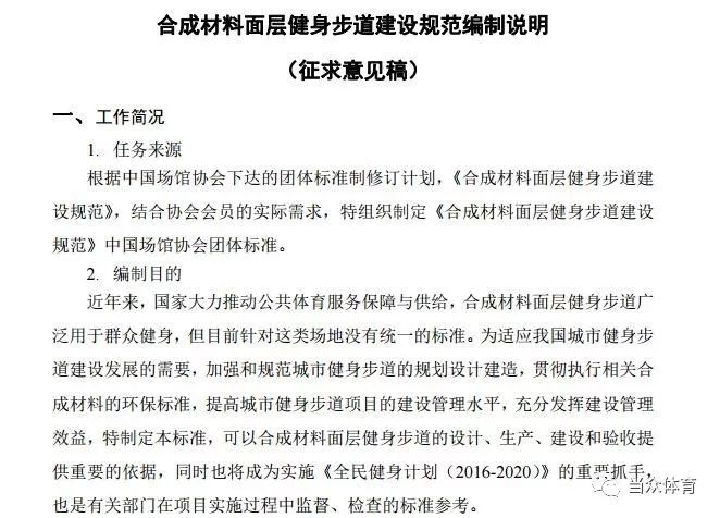 《合成材料面層健身步道建設(shè)規(guī)范(征求意見稿)》內(nèi)容如下: