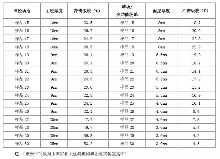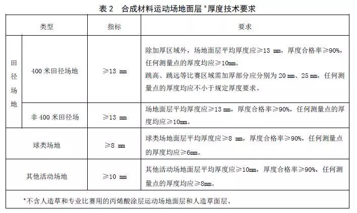 (2)為了保證合成材料面層運動場地能達到相應的安全保護性能和耐用性能,本標準結合現行國家標準和國際標準,對面層厚度作出如下要求: