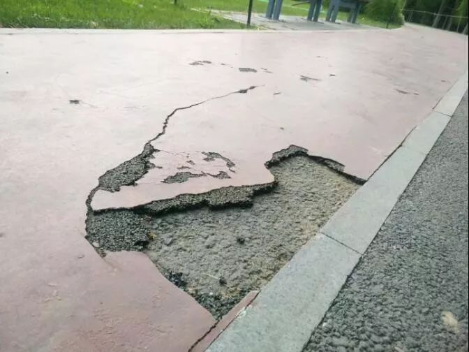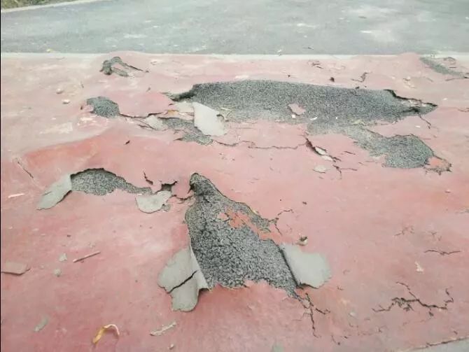 除此路段外,智能步道各路段均有不同程度的破損,有些破損處已經(jīng)形成了小坑洼,露出了跑道下邊的黃土地。