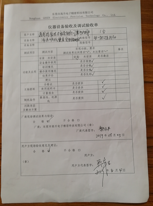 從訂單簽訂到生產、調試、計量校準、培訓售后,Delta德爾塔儀器自上到下高度重視,快速高效的完成了客戶的委托,并成功在華南國家計量測試中心取得了該中心首份“沖擊吸收與垂直變形檢測儀”合格計量證書,獲得了SGS廈門實驗室領導的一致好評。