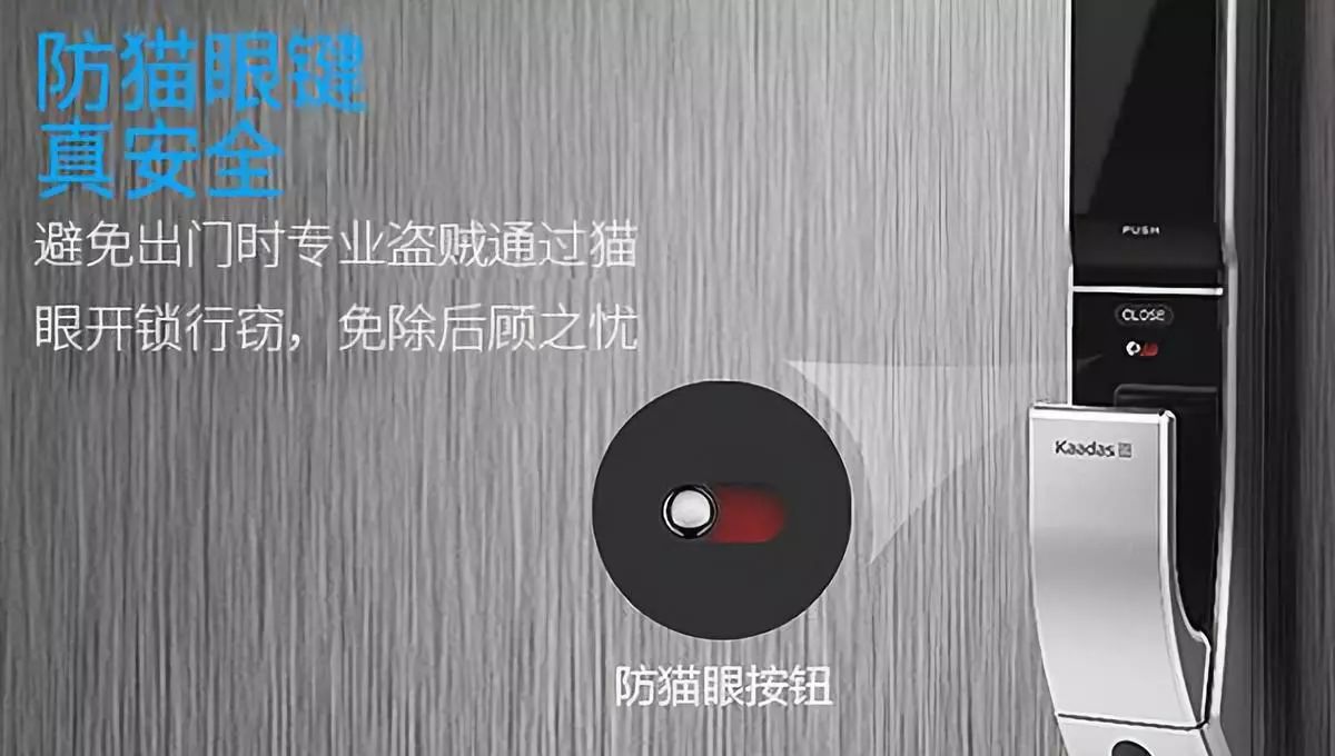 現在很多品牌的智能鎖生產商們針對這一現象特意設計了一個防貓眼開鎖按鈕,撥動按鈕之后可以直接將門把手固定,在門內無法按壓把手,在門外還是能夠用正確的開鎖方式開鎖,并不影響使用。