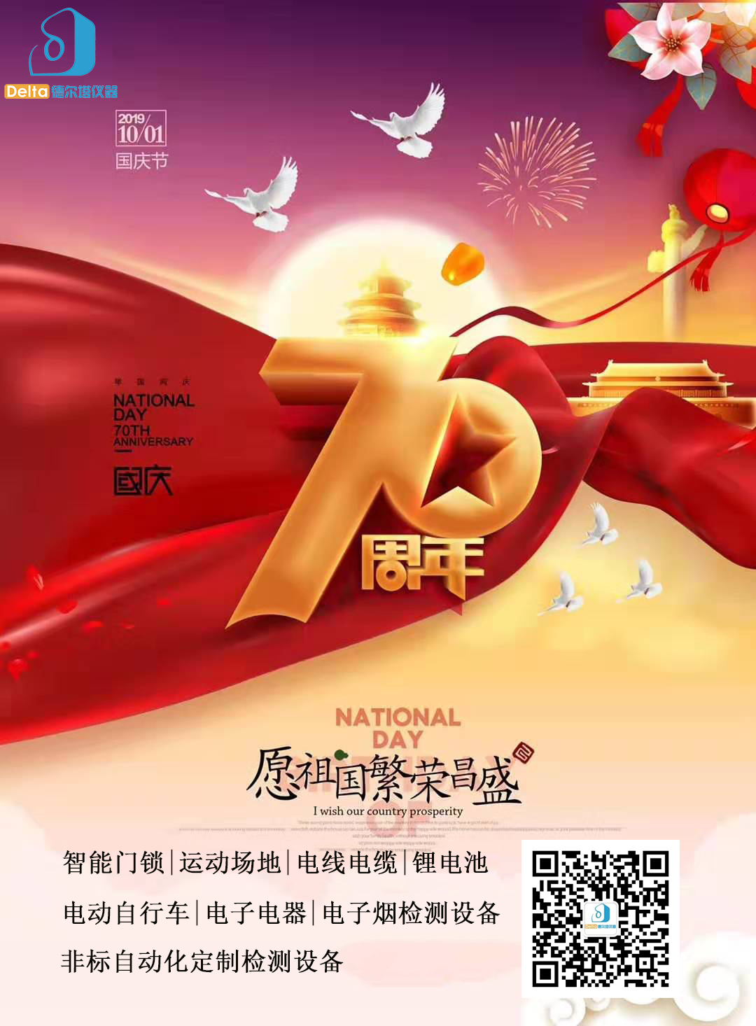 70年砥礪前行,70年拼搏奮斗,70年春華秋實(shí),偉大征程的70年,是崢嶸的歲月,更是一段段波瀾壯闊的歷史和大國(guó)征程里的閃光記憶。Delta德爾塔儀器在此熱烈祝賀中華人民共和國(guó)成立70周年,普天同慶,祝愿祖國(guó)更加繁榮昌盛!祝大家國(guó)慶節(jié)快樂(lè)!結(jié)合公司實(shí)際生產(chǎn)和要求,國(guó)慶期間放假安排如下:10月1日-10月7日,10月8日正常上班。