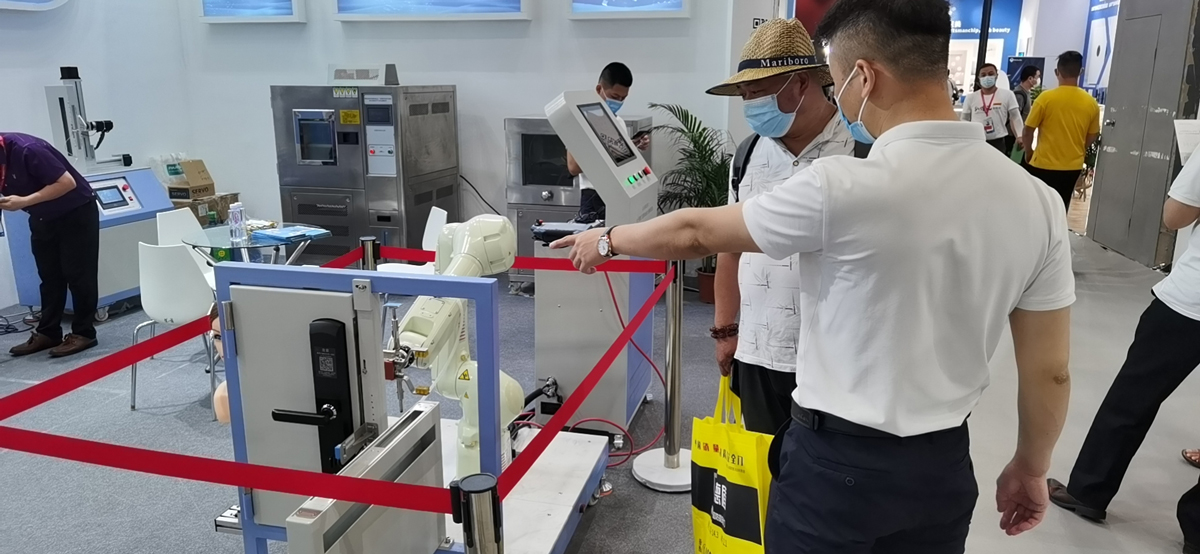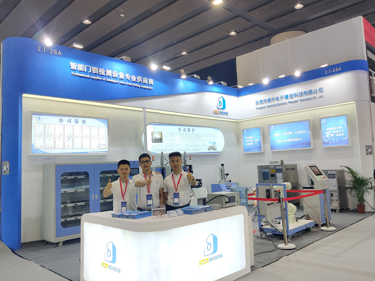 本屆廣州建博會,Delta德爾塔儀器亮相了公司研發升級的智能鎖檢測設備新品,包括指紋智能門鎖壽命耐久性測試系統、智能門鎖老化測試架、鎖具執手壽命試驗機、識讀裝置機械強度試驗機等等設備。