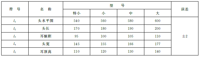 c) 測量頭盔規格尺寸及保護區,將頭盔佩戴到相應規格的標準頭型上,可調整佩戴裝置的調節裝置并在頭盔的頂端加5kg載荷,測量頭盔的保護區,并標出試驗區;