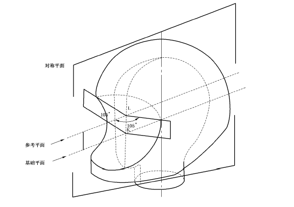 a) 左、右水平視野:兩個兩面角分別由縱向豎直中央平面和向左、右兩個對稱方向形成的不小于105°平面組成,位于參考平面和基礎平面之間,其邊是直線LK。如下圖所示:
