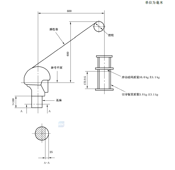 b) 穩定后釋放沖擊砝碼,使其從600mm±5mm的高度自由落下并撞擊在終點擋板上;