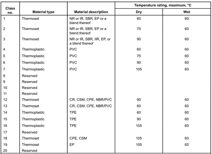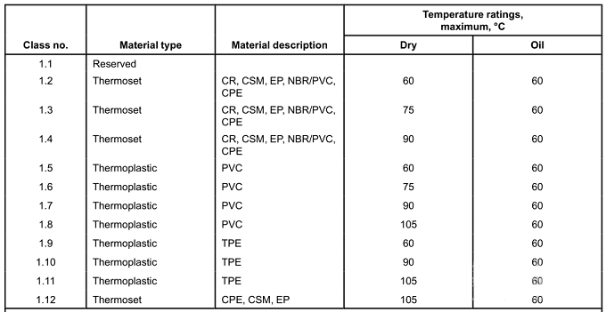 It is rated 60 °C, 75 °C, 90 °C, or 105 °C