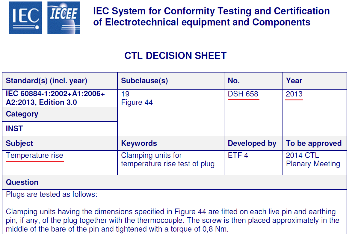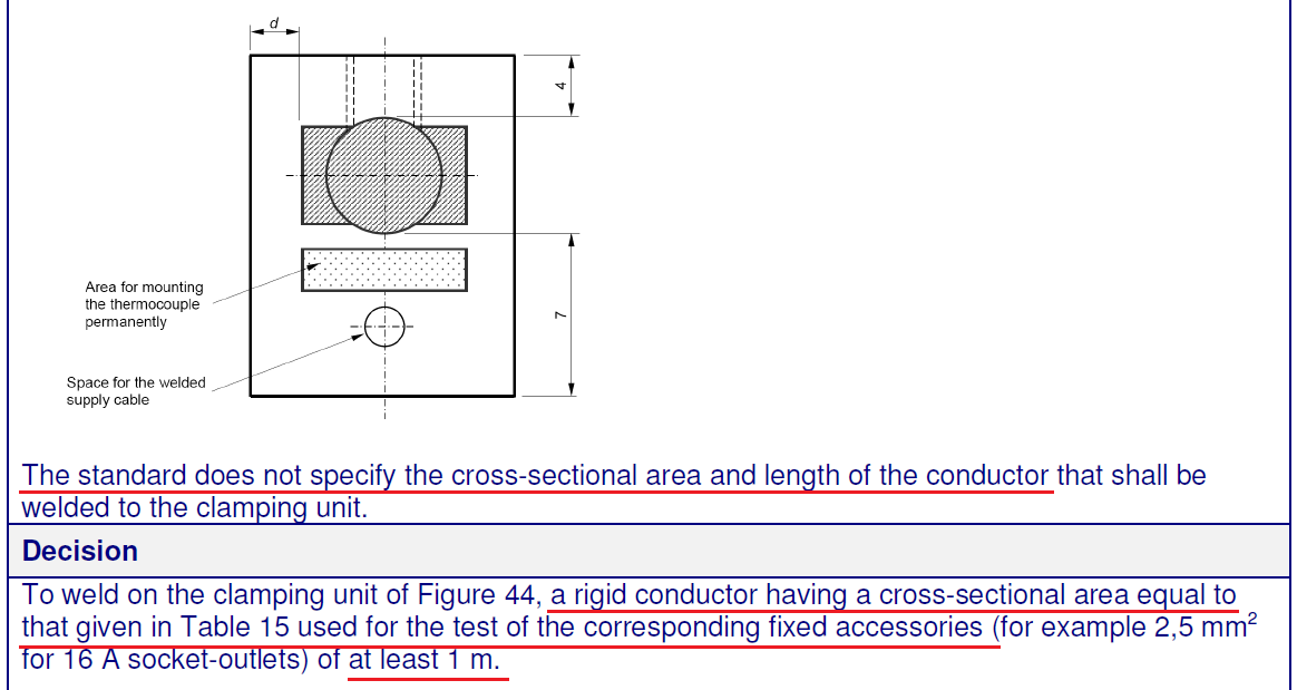 針對上述情況,2013年IEC CTL發(fā)布決議(No.DSH 658),對夾緊元件焊接導(dǎo)線的具體參數(shù)給出了明確規(guī)定,CTL決議內(nèi)容如下: