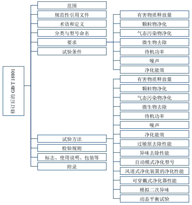 修訂后的 GB/T 18801 包括9個章節及15個附錄,涉及7類技術要求及14項測試方法,具體架構見下圖。