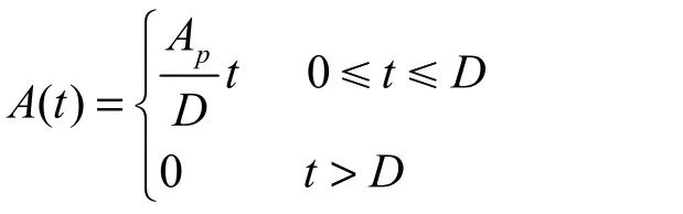 (2)后峰鋸齒波沖擊脈沖。后峰鋸齒波沖擊脈沖可以用一個時間的連續函數描述: