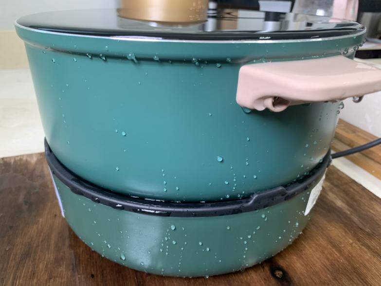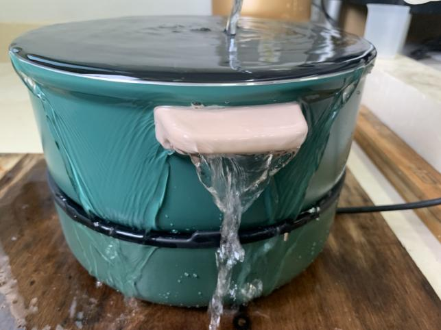 筆者選取了一個電熱鍋樣品,設(shè)計對比試驗:所有試驗條件都相同,只是注水的時間不同。