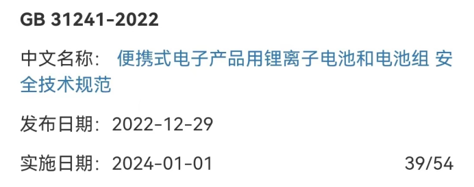 GB 31241-2022是對GB 31241-2014進行的修訂。受工業和信息化部委托,由中國電子技術標準化研究院(賽西,CESI)牽頭,通過工信部鋰離子電池及類似產品標準工作組開展該標準的編制工作。詳細信息如下: