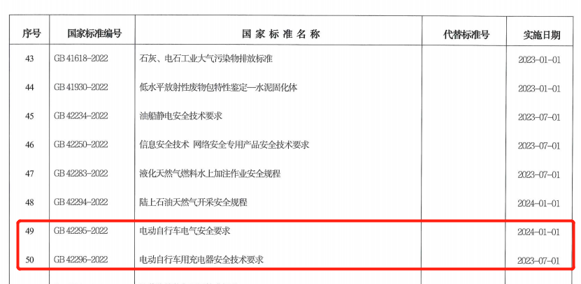 2022年12月29日,國家市場監(jiān)督管理總局、國家標準化管理委員會發(fā)布了GB 42295-2022《電動自行車電氣安全要求》、GB 42296-2022《電動自行車充電器安全技術要求》兩項國家標準。
