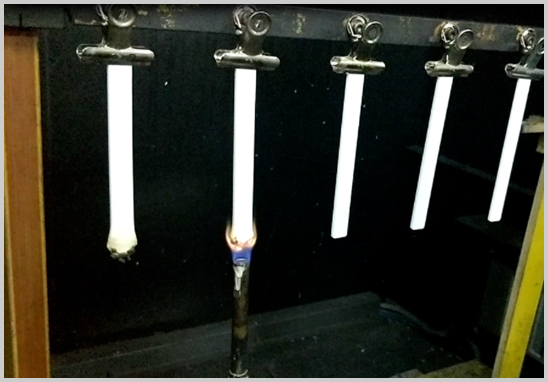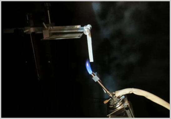 對(duì)條形樣品進(jìn)行五次5秒的燃燒測(cè)試后,余焰&余灼在60秒內(nèi)熄滅,滴落物不可點(diǎn)燃棉花。