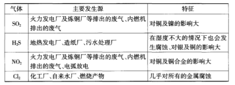 各種腐蝕性氣體的特性: