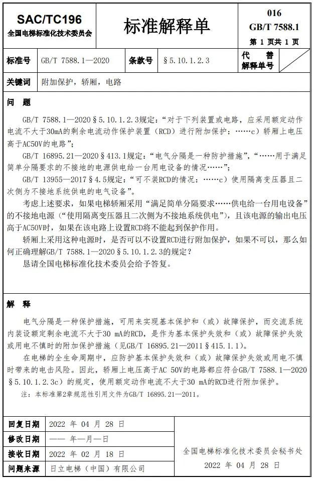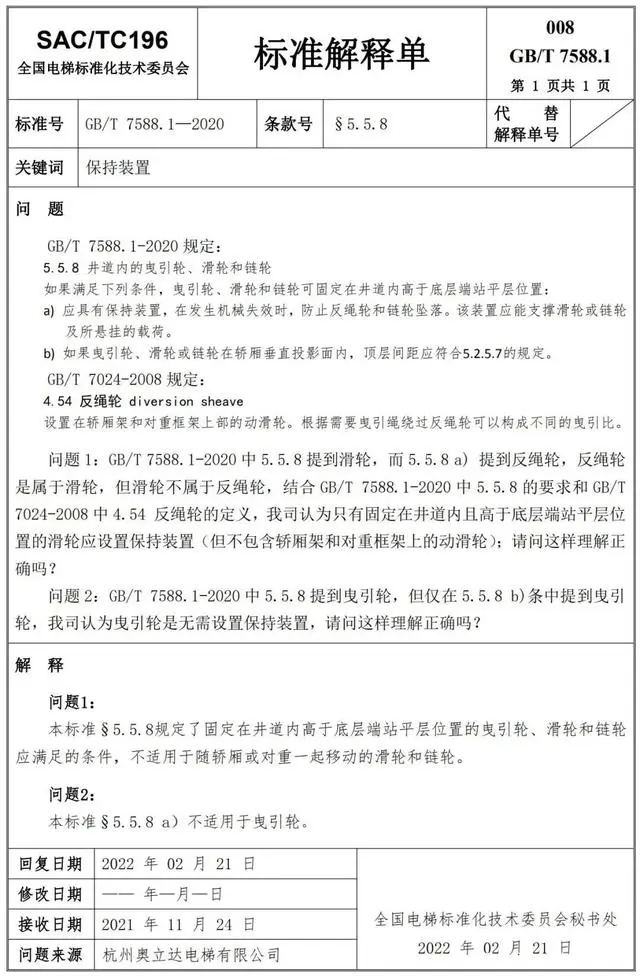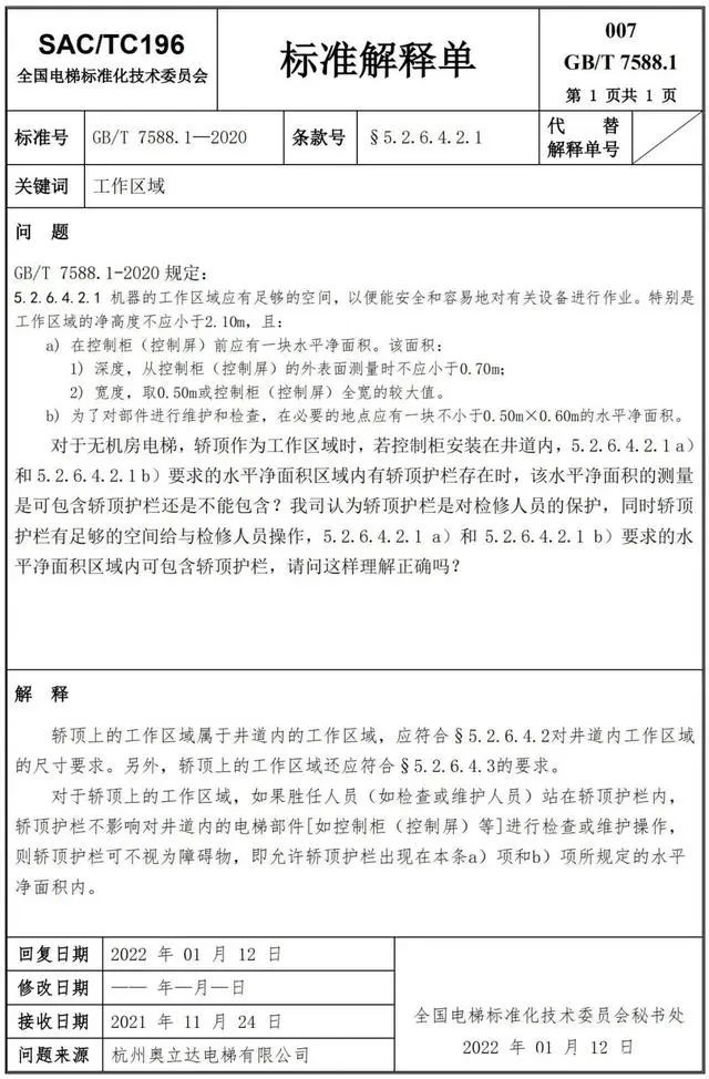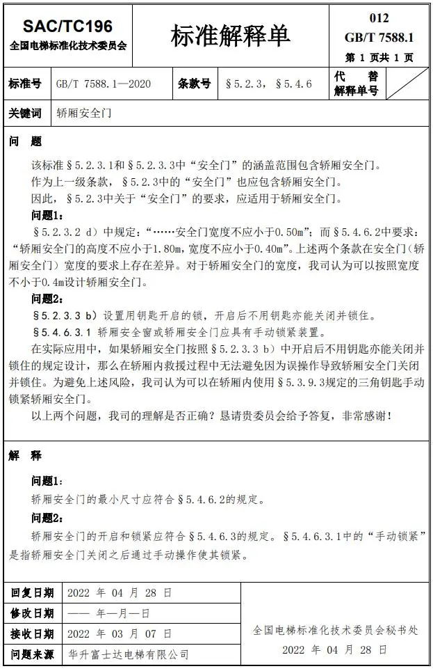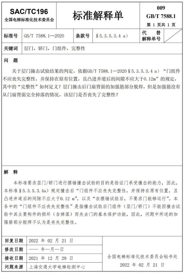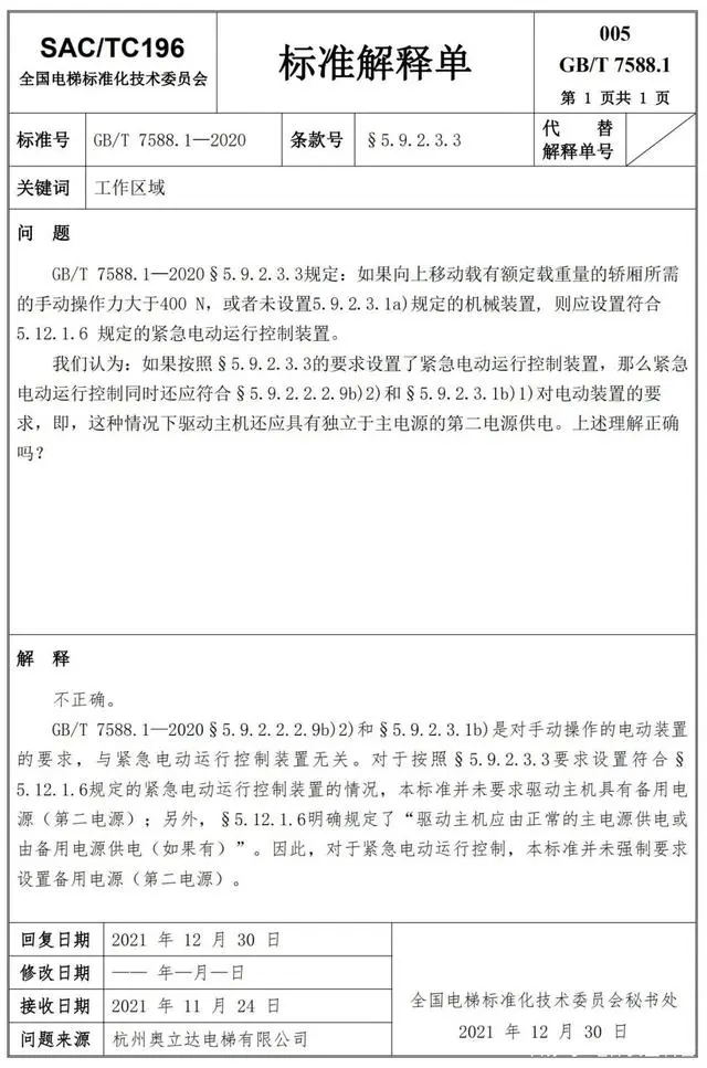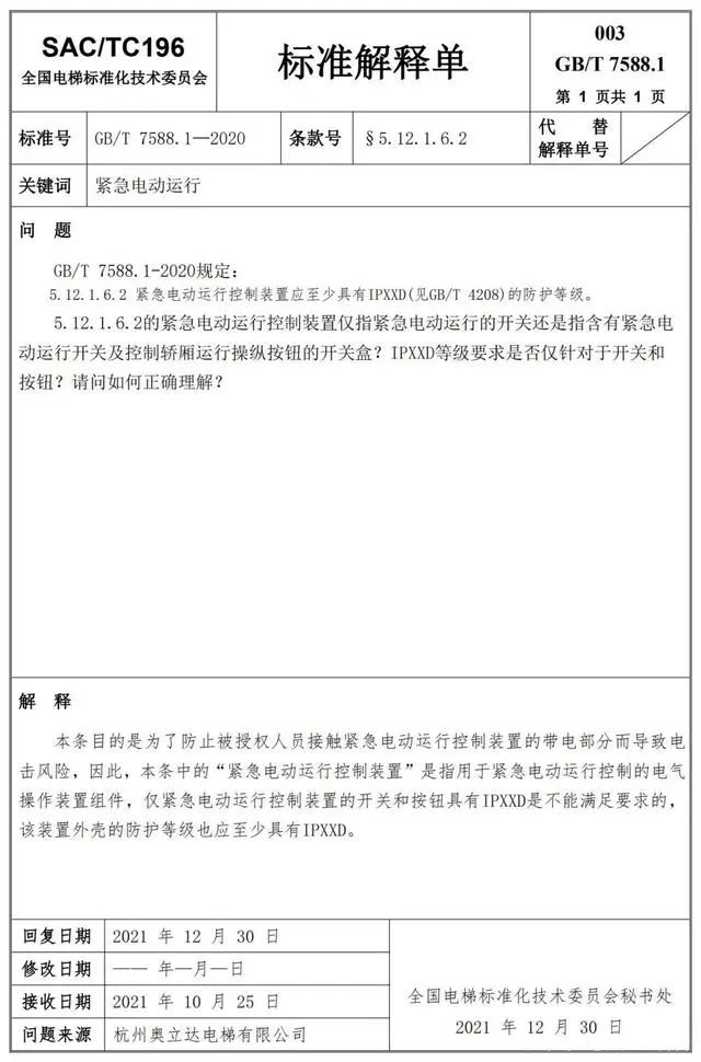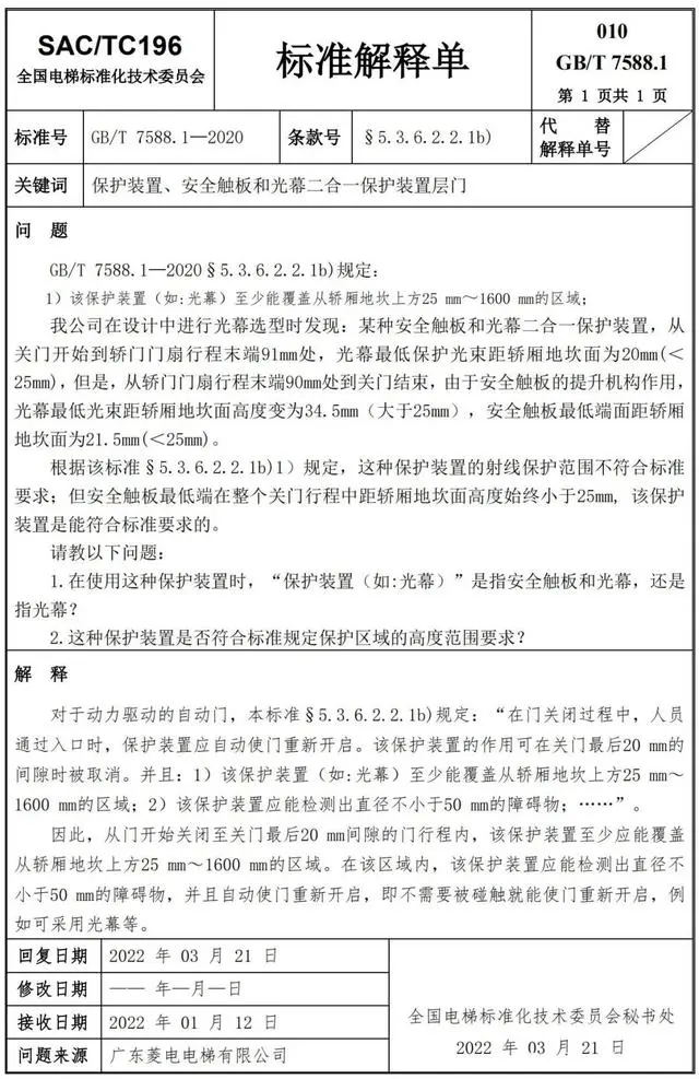 Delta德爾塔儀器小編了解到,GB/T 7588.1—2020《電梯制造與安裝安全規范 第1部分:乘客電梯和載貨電梯》已經于2022年7月1日實施。截止到2022年3月21日,全國電梯標準化技術委員會相繼發布了GB/T 7588.1—2020《電梯制造與安裝安全規范 第1部分:乘客電梯和載貨電梯》第1-10號標準解釋單。