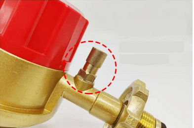 家用調(diào)壓器出口為軟管接頭“寶塔頭”時,應(yīng)選擇有過流切斷安全裝置的產(chǎn)品(下圖分別為進(jìn)口側(cè)和出口側(cè)帶過流切斷安全裝置)。