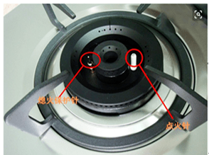 家用燃?xì)庠罹呦ɑ鸨Wo(hù)裝置一般安裝在靠近火蓋側(cè),直徑大約2-4毫米。