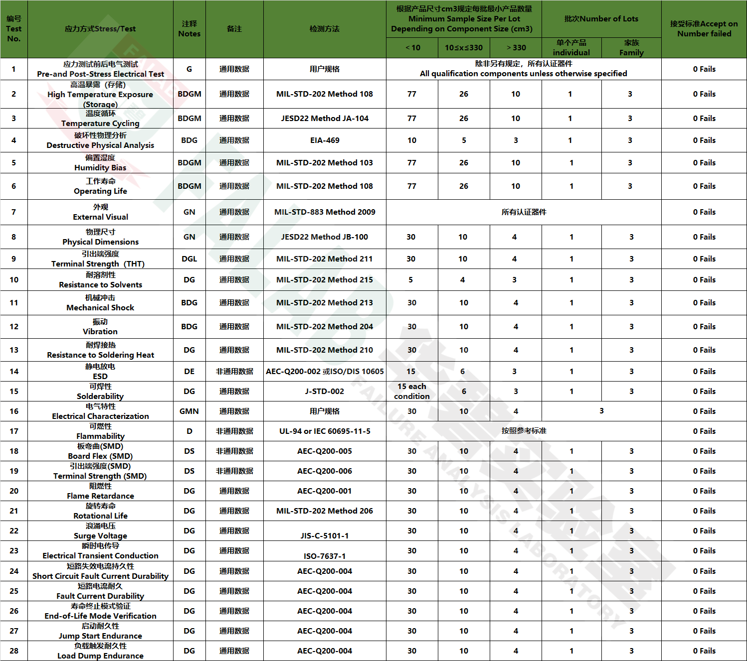2023年3月20日,AEC發布了最 新的無源元件測試認證標準:AEC - Q200 - Rev E:STRESS TEST QUALIFICATION FOR PASSIVE COMPONENTS。