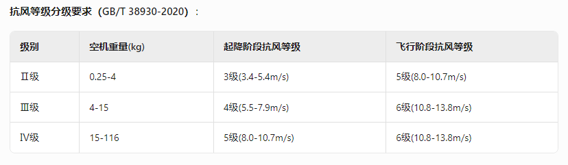 2、GB/T38930-2020《民用輕小型無人機系統抗風性要求及試驗方法》;