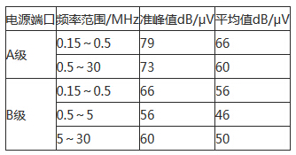 表1傳導騷擾限值表