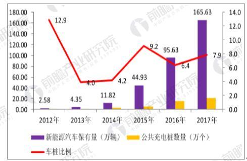 2017年新能源汽車、充電樁保有量及車樁比例情況
