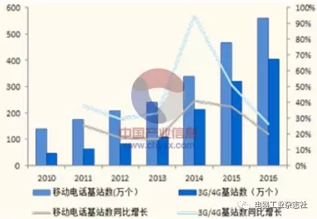 2010年到2016年通信基站數(shù)量