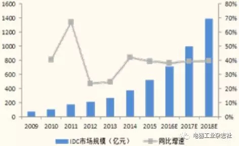 2009年到2019年IDC數(shù)據(jù)機(jī)房市場(chǎng)規(guī)模