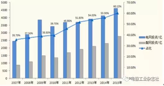 2007年到2015年電網(wǎng)投資和配網(wǎng)投資額