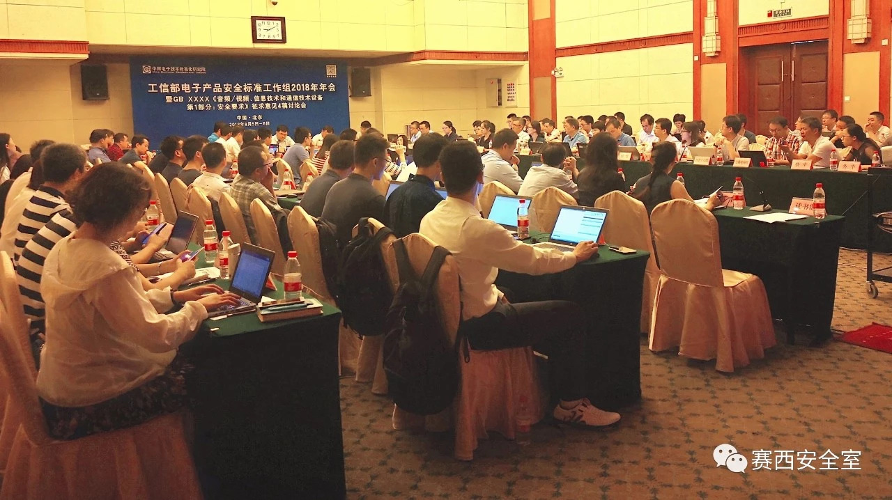 2018年9月5日,工業(yè)和信息化部電子產品安全標準工作組(以下簡稱“工作組”)2018年年會暨GB XXXX 《音視頻、信息技術和通信技術設備 第1部分:安全要求》征求意見4稿討論會在京隆重召開。本次會議會期兩天,來自企業(yè)、行業(yè)協(xié)會、檢測機構、標準化組織的70余家單位的110余名代表出席了本次年會。中國電子技術標準化研究院(賽西,CESI)作為工作組秘書處單位組織了此次會議。