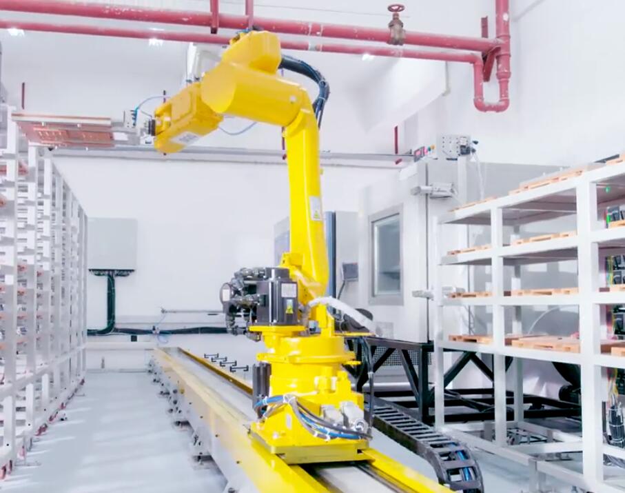 鋰電池安全性能自動化測試系統,通過軟件控制機器人,自動完成樣品到各種鋰電池安全性能間隔從設備的裝卸更換,并通過對設備的遠程通訊及控制,自動輸出測試數據及測試結果。該系統的成功研發,突破性地實現了檢測環境健康安全、測試效率及質量的同步提升。